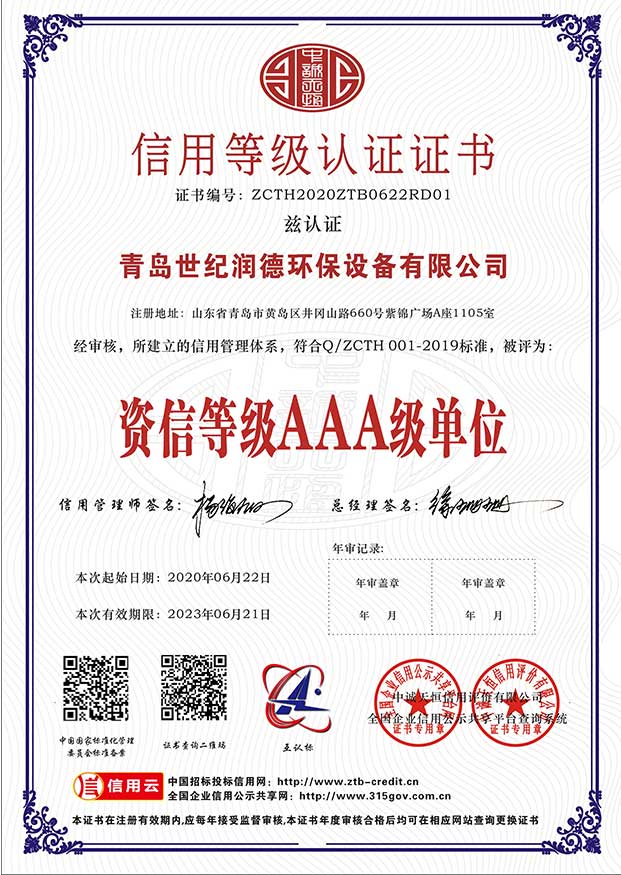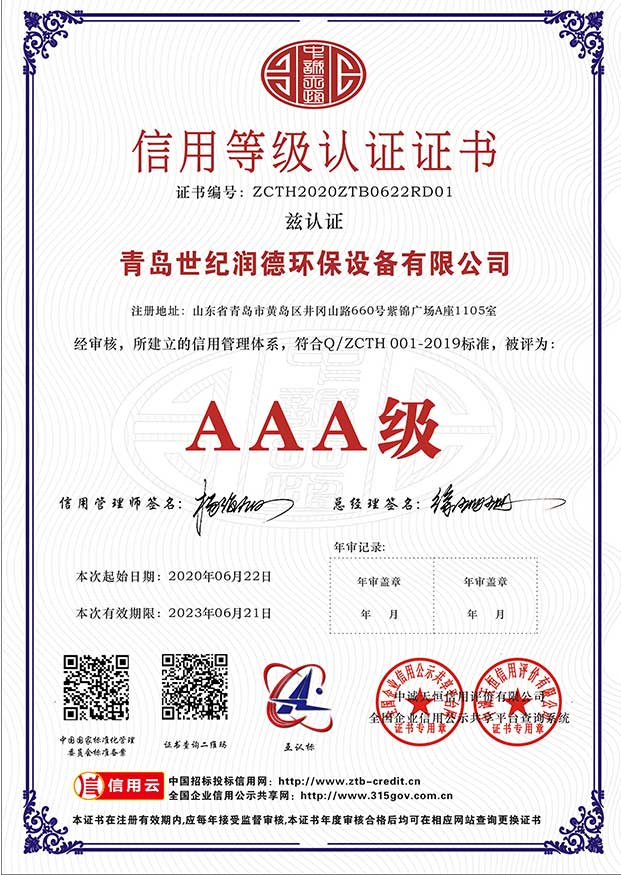 信用等级认证证书
